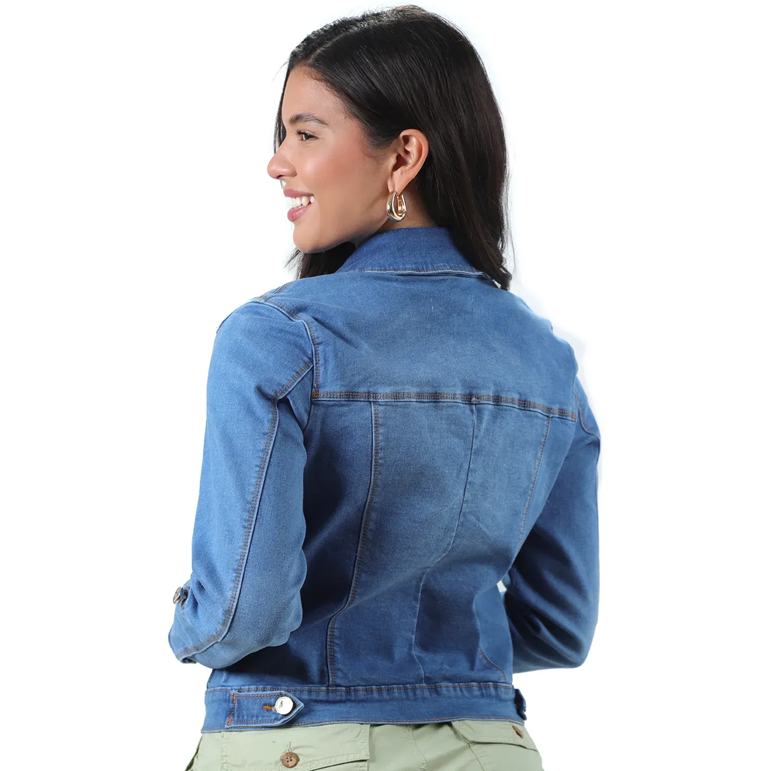 • Casaca Jean Strech Mujer 3939 Con Corte Delantero Y Bolsillo Parche 4