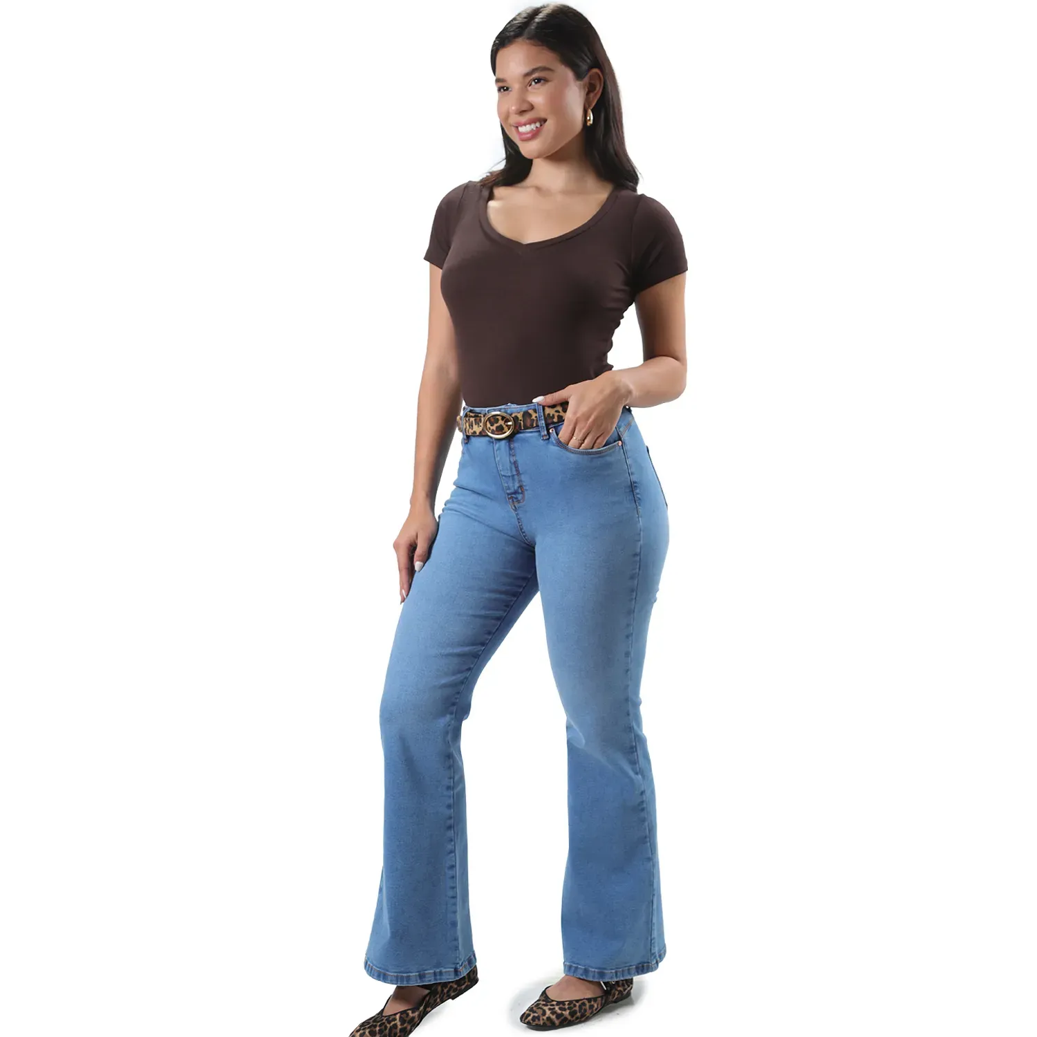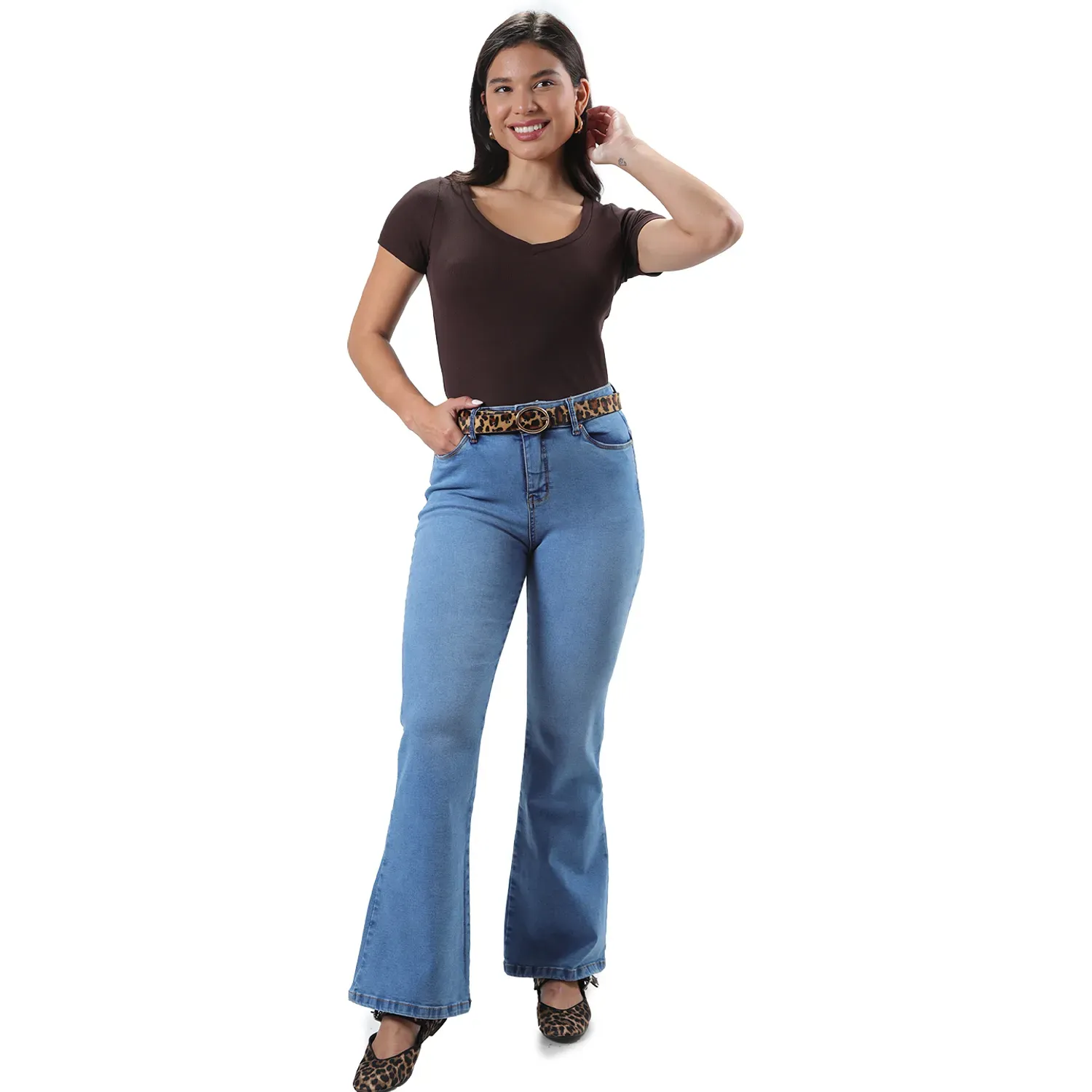 Pantalon Jean Strech Mujer 3950 Flare Cintura Con Bolsillo