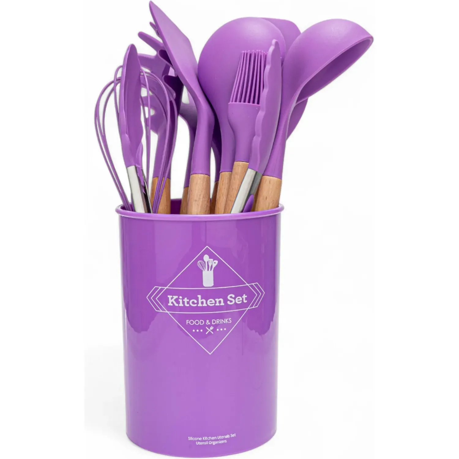 • Jgo Utensilios De Silicona Para Cocina 12 Pz Mango Madera Akw-C02b(7242) 12