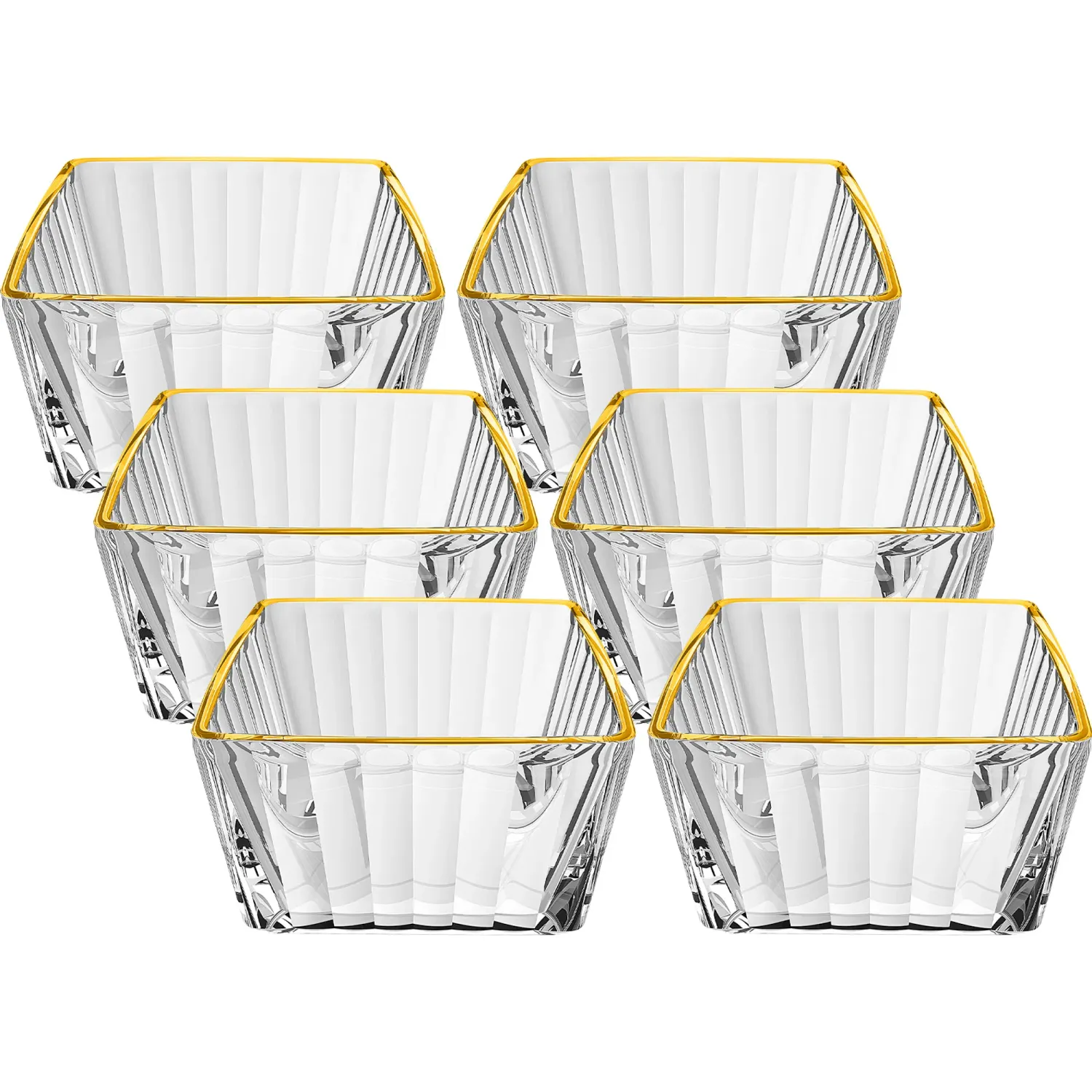 Juego X 6 Piezas Bowl Cuadrado Con Rayas Filo Dorado 215 Ml
