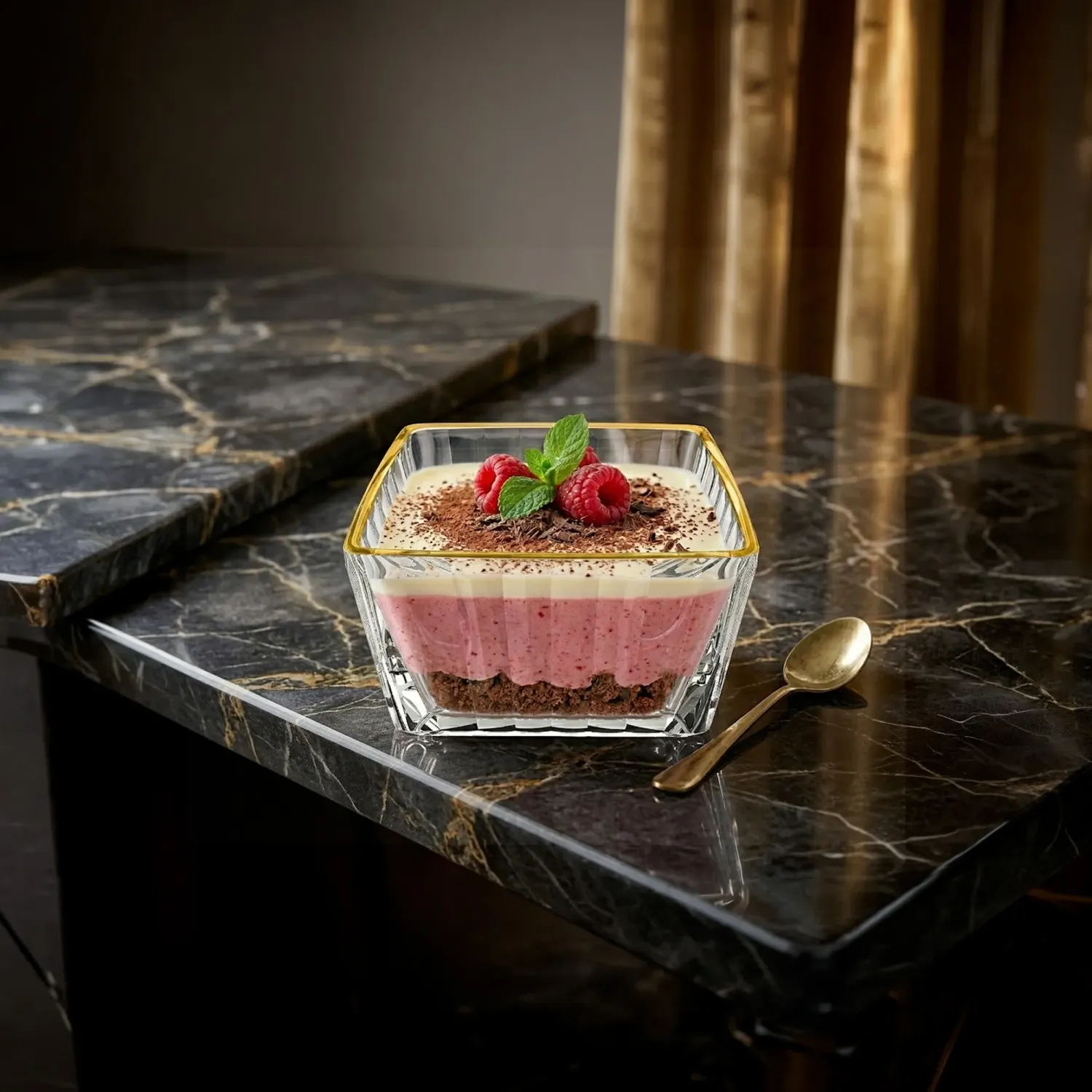 • Juego X 6 Piezas Bowl Cuadrado Con Rayas Filo Dorado 215 Ml 1
