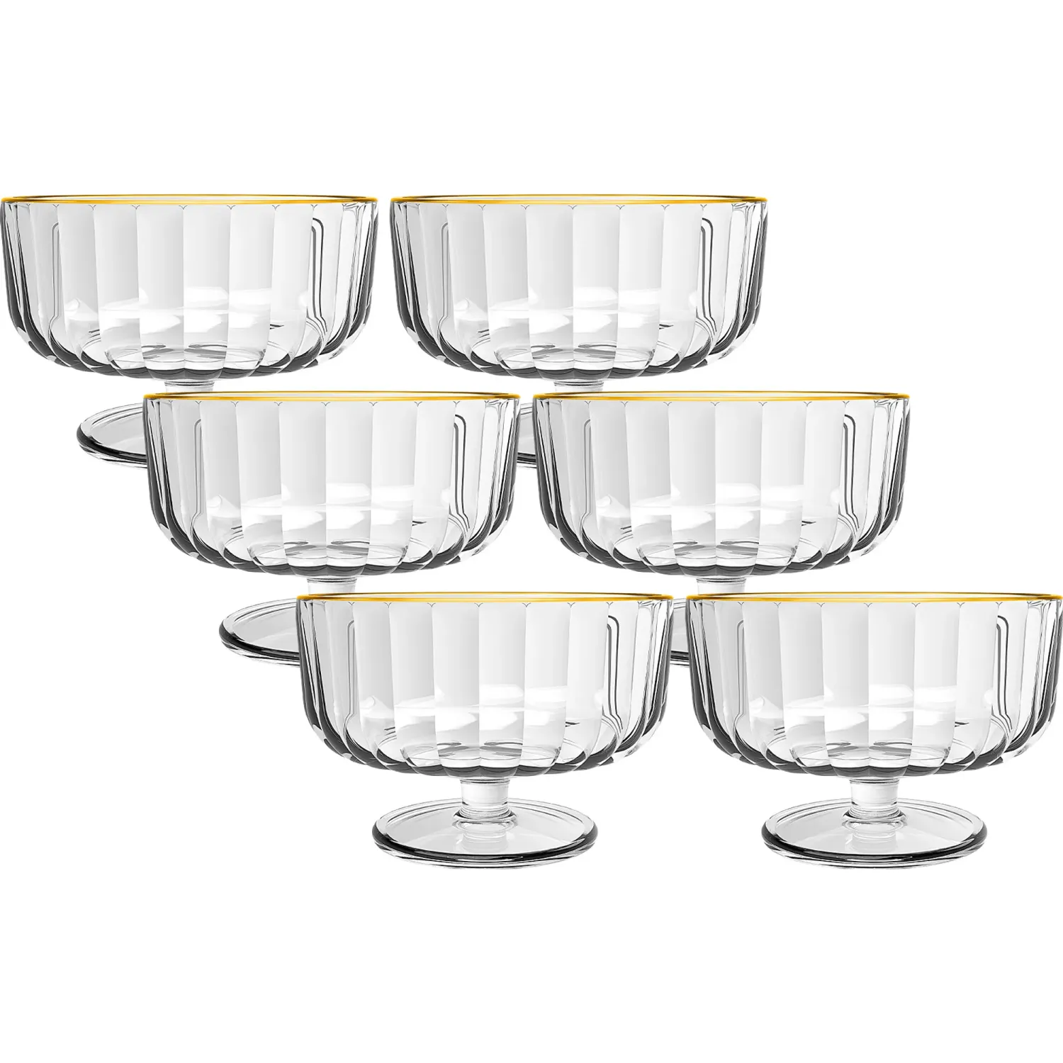 Juego X 6 Piezas Copa Postre Modelo Flor Filo Dorado 320 Ml