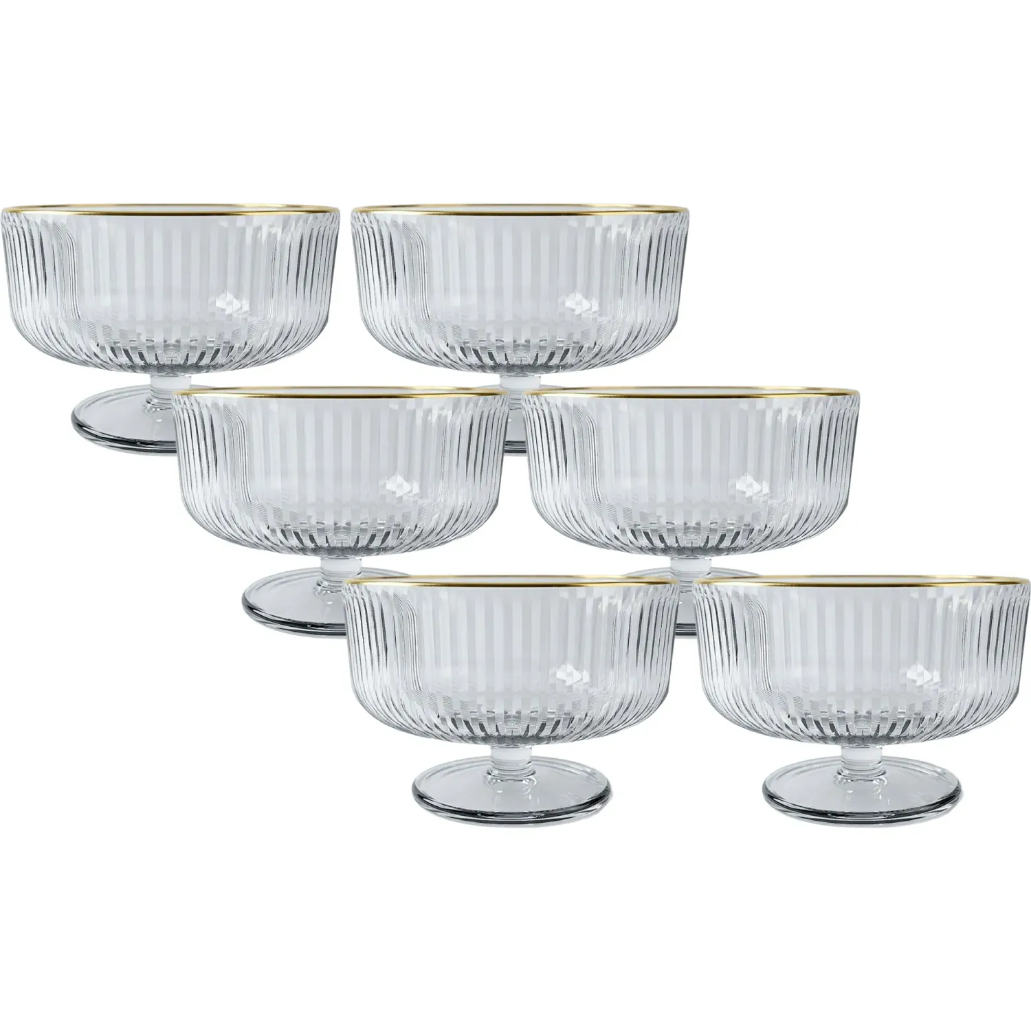 Juego X 6 Piezas Copa Postre Modelo Rayas Filo Dorado 320 Ml