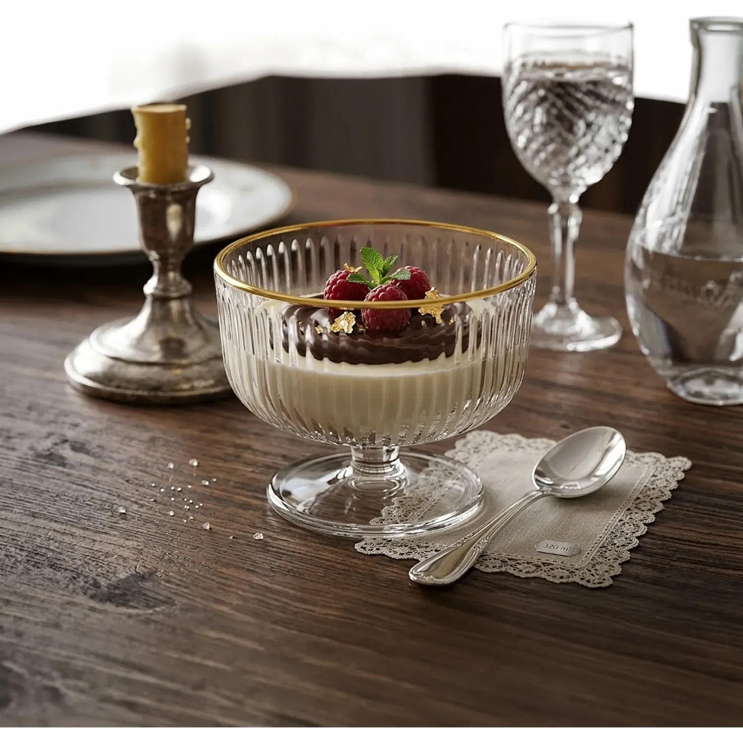 • Juego X 6 Piezas Copa Postre Modelo Rayas Filo Dorado 320 Ml 1