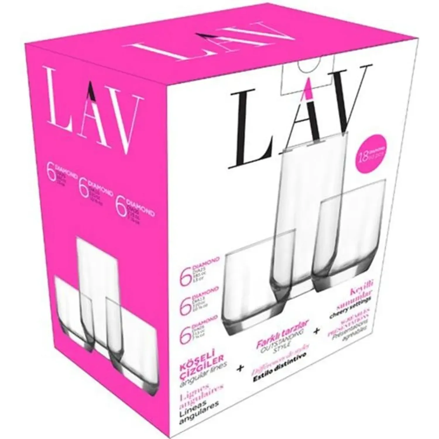 • Set X 18 Vaso Long Drink (13onz)/Whiskey(10.5onz)/Water(7.5onz)  Lv-Dias1 1